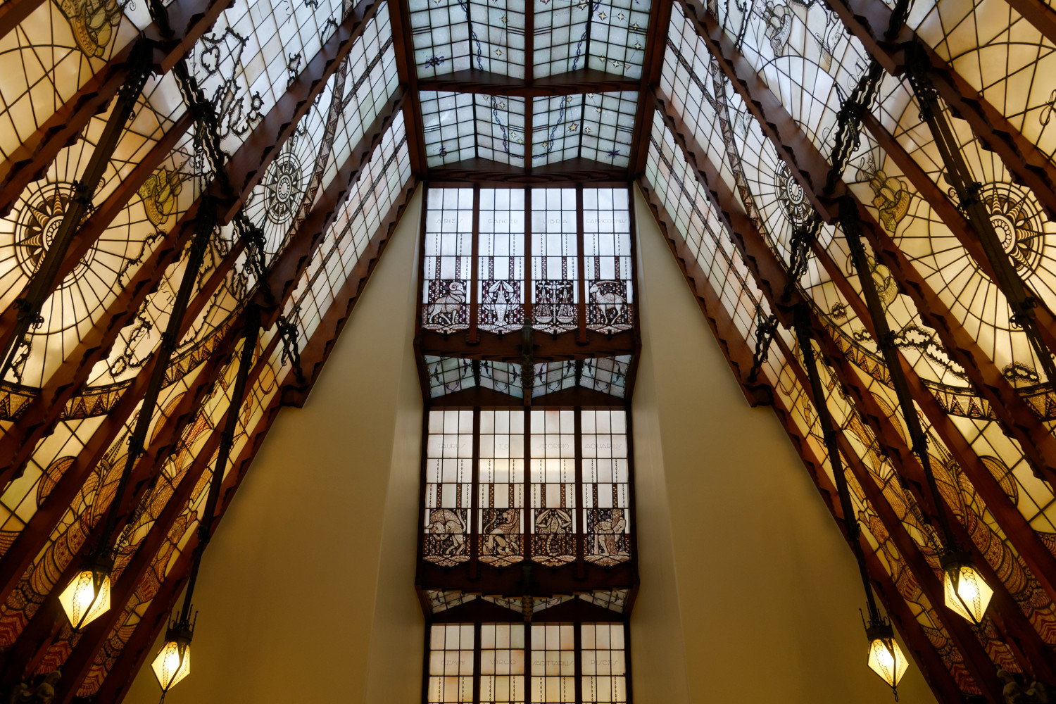 Stained glass stairway ceiling |