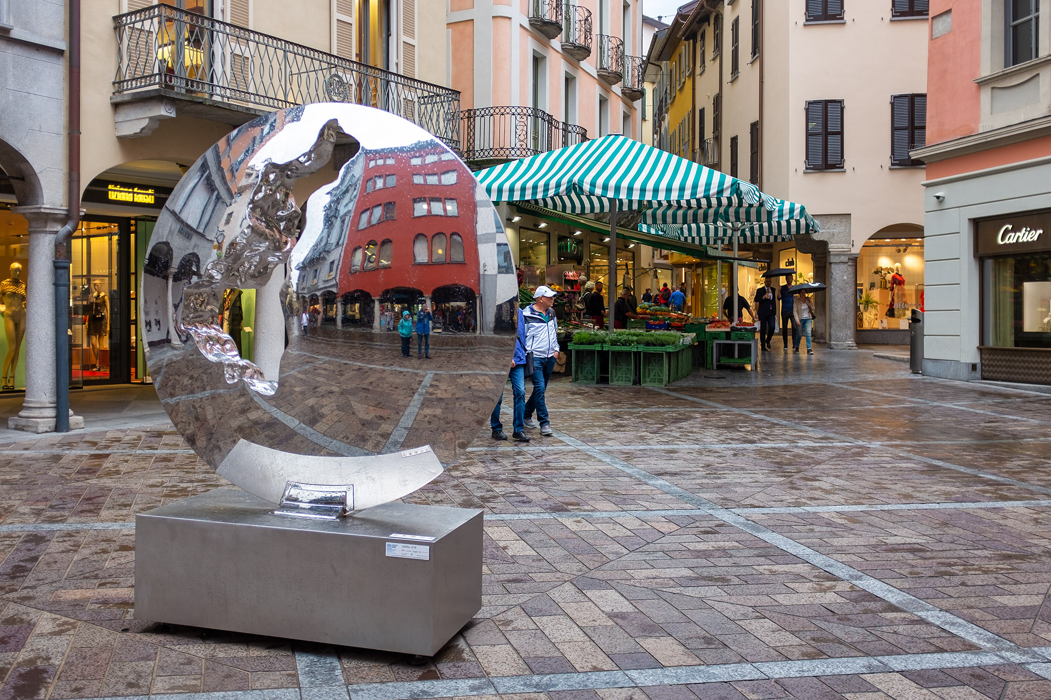 For August 7, we had planned to drive through the Engadin, take the Maloja Pass, cross the border into Italy, drive along Lake Como until Menaggio and from there head west, cross back into Switzerland, and reach Lugano that way. Alas, the weather forecasts was truly awful, and so we chose to take the shortest possible route to Lugano, the San Bernardino Tunnel. It was drizzling until we entered the tunnel, but when we exited on the other side, it was raining extremely hard, there were patches of dense fog, and visibility was extremely poor. The windshield wipers of our rental car were barely able to cope with the amount of water that came down. Except for the fog, this weather stayed with us all the way into Lugano. Only after lunch did it ease up enough for us to walk through town and take in some sights. We awoke the next morning to beautiful sunshine and clear skies, and this allowed us to enjoy a bit more of this lovely town. Afterwards, we checked out of our hotel, filled up the car, and headed back to Cannes where we arrived in the early afternoon. What a fun journey! At all times, we just did whatever we felt like, and this, combined with beautiful sights, fond memories, and old friends, made this trip special.